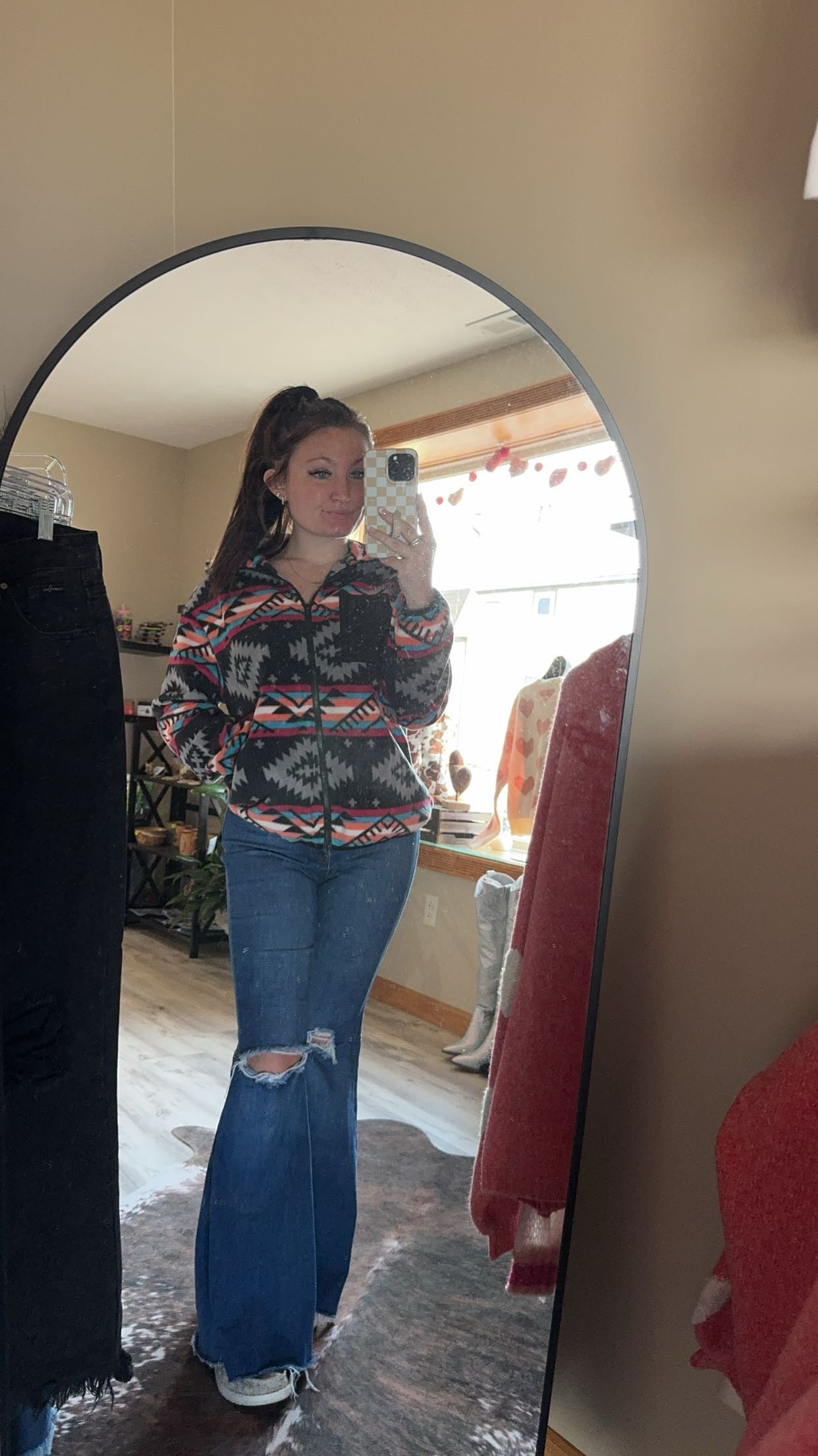 aztec zip up collared jacket